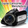 2.4"digital video camcorderMain SpecificationHigh definition resolution,2.4” TFT LCD Screen,Take photo ( up to 12.00 mega pixel)Video Camera, browse photos4x digital zoon and 4x photos enlargeSupport insert SD card ( UP to 8GB)LCD rolating 270 °self-taking photos will be changed automatically.Brust, self-timer. Fill light irradiation.TV OutputPC webcamLI- batteryUSB falsh diskTechnical Data Main functionsDigital Video Camcorder/digital camera/ voice recorder/webcam/Removable disk/ Music player Image device0.5 Mega Pixels CMOS senser, 12.0 Mega Pixels enhanced.Movie resolution(1 VGA 640*480 pixels. Frame speed 30 f/s(2 QVGA 320*240 pixels. Frame speed 30 f/sResolution of pictures JPEG:4032*3024 12.0MP JPEG:3264*2448 8.0MPJPEG:2560*1920 5.0MPJPEG:2048*1536 3.0MPJPEG:1600*1200 2.0MPJPEG:1280*960 1.3MPStorage mediaBuilt-in memory: 32MB(The built-in memory can be made according to customer’s requirements) SD & MMC card compatible. SD card: Max.8GB.Digital zoom4XFile formatImages *.JPG,ideos *.MP4,oice recordings *.WAVLCD Display2.4"color TFT screen ( 270°Rotation)White balanceAuto, Sunny, cloudy, Fluorescent , Tungsten EffectStandard, black & white , Sepia Self timer5 seconds, 10 seconds USB interfaceUSB 1.1Focal lensf=7.45mm, F=3.0Focal rangeMacro:0.3 1.5m , Normal: 1.5m InfinityShutter typeElectronicShutter speed1/1800 1/4secTV outputNTSC/PALPower supplyRechargeable lithium battery ( 3.7V 1350mhA)Power savingNever auto off / 1 minute /3minutes/5 miuntessize115*50*64MMweight200gWorking temperature0°C 40°CWorking moisture10% 80%System supportWindows 98/2000/ME/XP/vista
